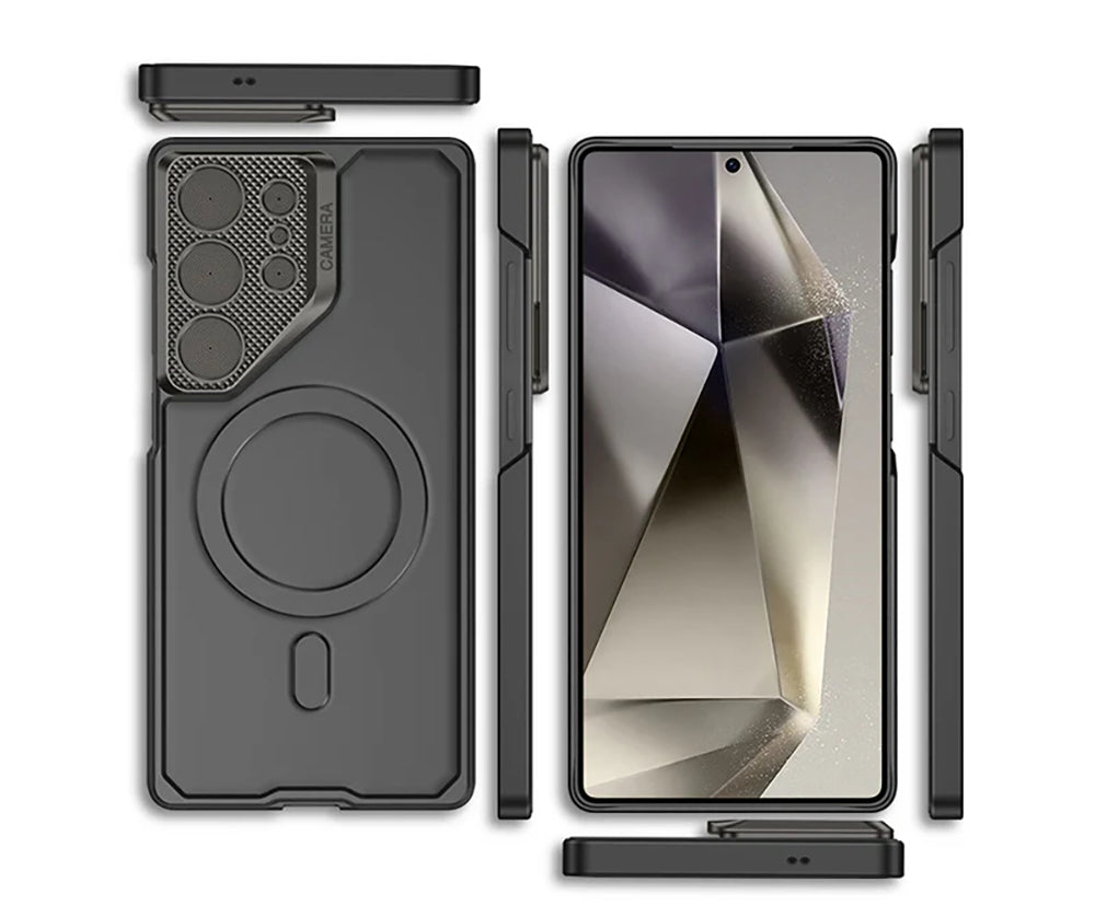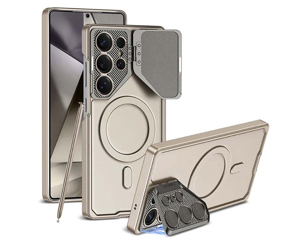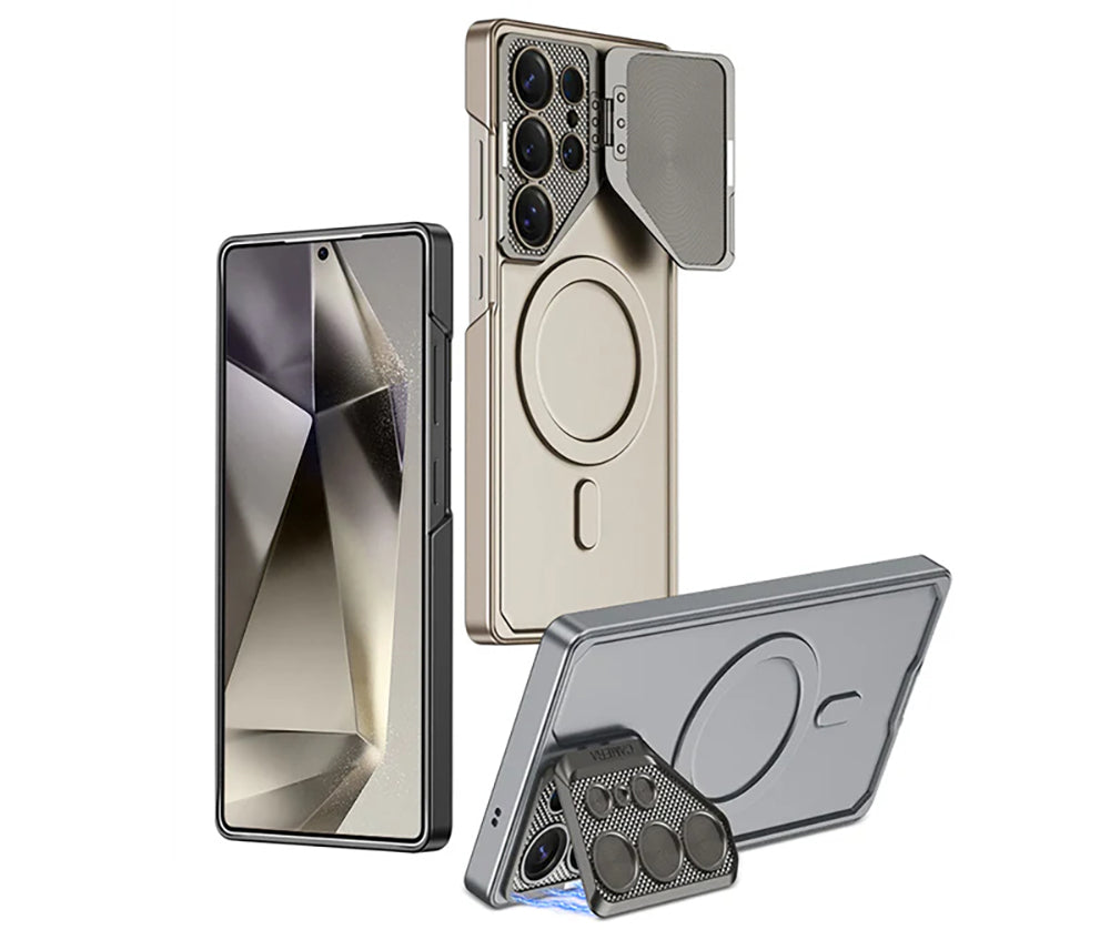 Crafted from aluminum alloy, this phone case offers enhanced impact resistance along with a refined and comfortable feel, exuding a premium finish. Its unique camera flip cover safeguards the lens from scratches and also functions as a practical phone stand, delivering an optimal viewing angle for ease of use.