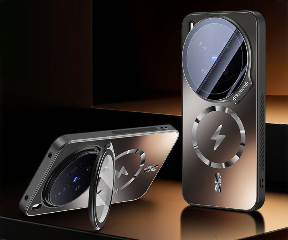 This protective case has a 9H tempered glass and nano-ion frosting for a thin and light design with an anti-fingerprint coating. It is drop-resistant and supports MagSafe charging. The metal lens ring can also function as a phone holder for extra protection.