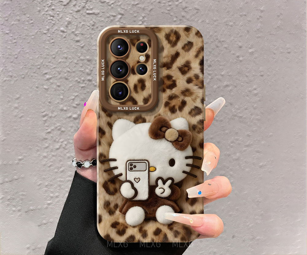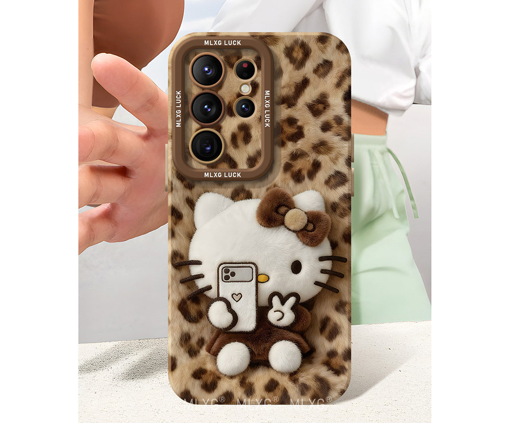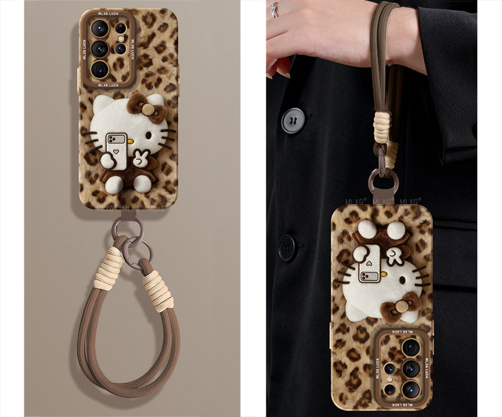 Leopard Print Kitty Liquid Silicone Lanyard Case