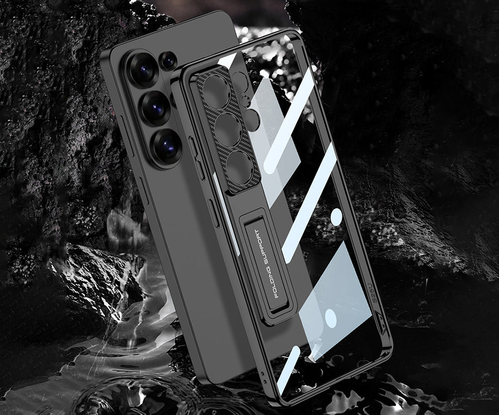 There is an adjustable stand built into the back of the phone case, which can support the phone at two angles of 60 degrees or 45 degrees in landscape mode. Carefully designed, without blocking the ultra-sensory full-view screen of the mobile phone, allowing you to enjoy videos from a comfortable viewing angle.