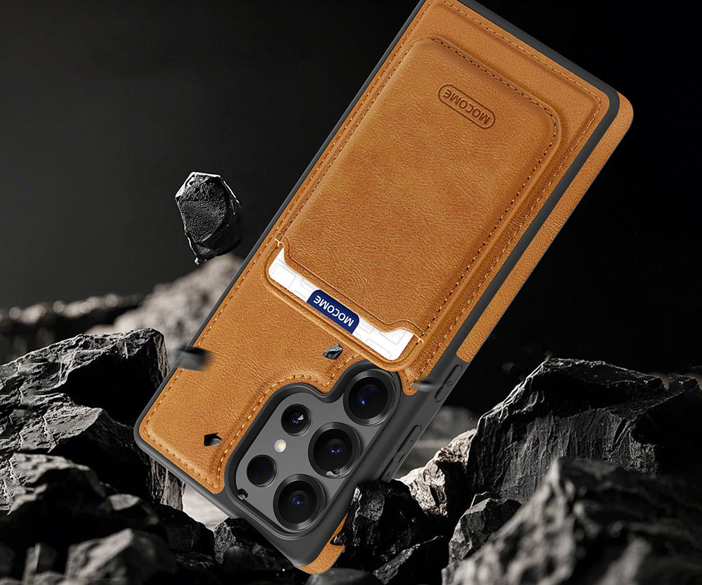 About design Keep your Galaxy S25 series safe and secure with this foldable card holder case. Made of luxurious leather with anti-scratch coating for extra protection. In addition, the unique card slot allows you to carry cards conveniently and prevent them from being lost. Fashionable and practical, slim and anti-fall.