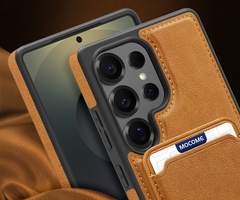 This foldable leather case protects your Galaxy S25 series while securely holding your cards in a special slot. Its slim design offers strong, scratch-resistant protection without added bulk.