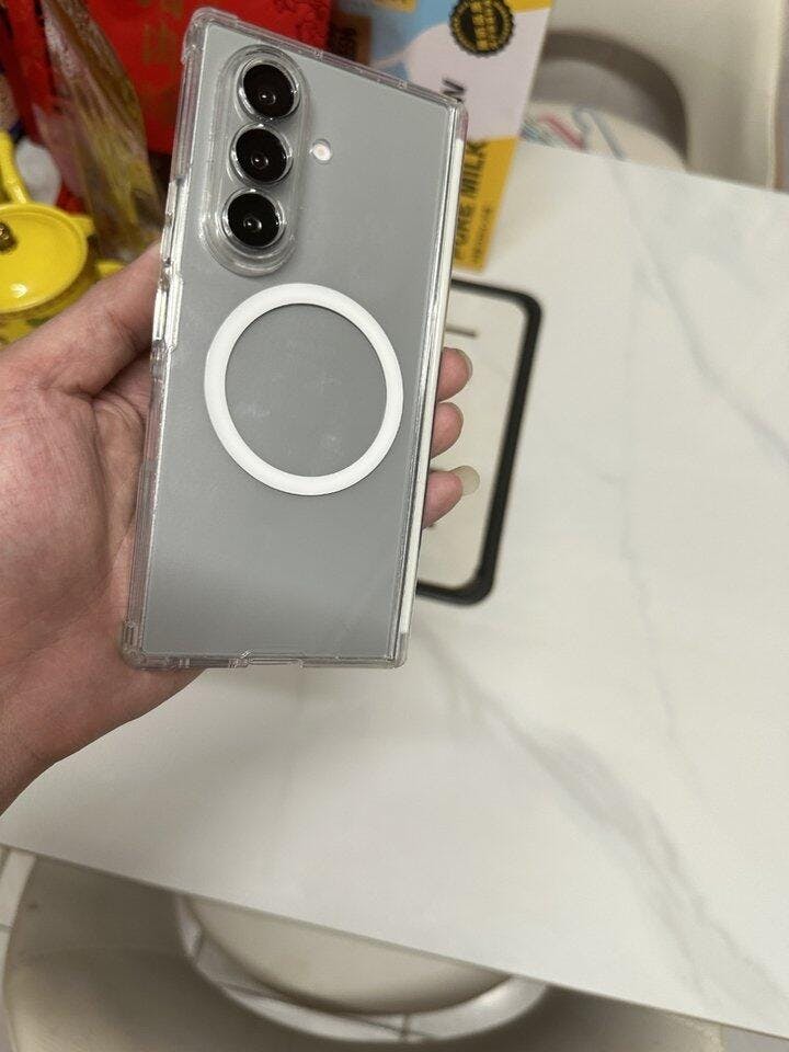 This clear phone case is made from transparent PC material with antibacterial and anti-fingerprint coating for durability and cleanliness. Its 180° magnetic hinge allows easy attachment and rotation. It protects your Galaxy Z Fold7 while highlighting its colors with a sleek design.