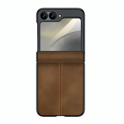 Experience refined craftsmanship with the Galaxy Z Flip6 Leather Case, designed to elevate your tactile experience. Crafted from premium luxury leather and meticulously finished by skilled artisans, this case combines sophisticated style with superior protection, ensuring your phone remains secure while exuding elegance.