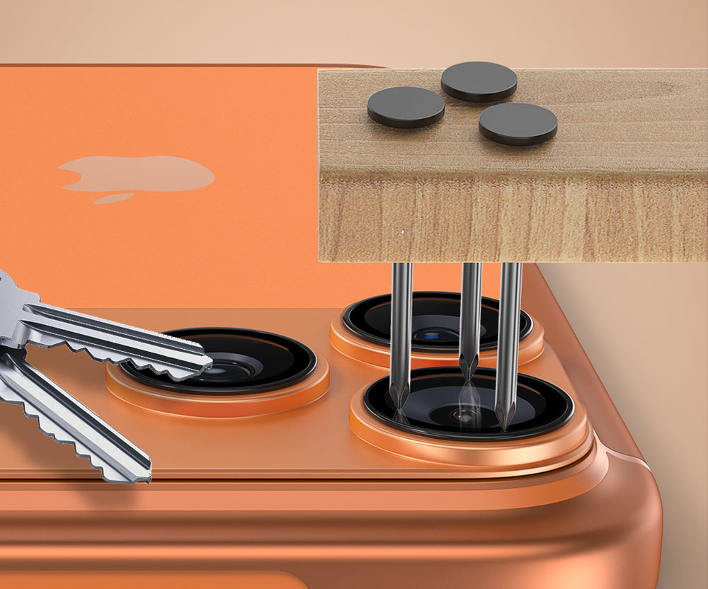 The Camera Protector made of sapphire glass is a premium and durable accessory designed to safeguard the delicate camera lenses on your iPhone. Sapphire glass is known for its exceptional hardness and scratch resistance, making it an ideal material for protecting sensitive camera components. The lens protector is precisely cut to match the dimensions of the iPhone camera lenses, ensuring a seamless fit without interfering with the camera's performance or image quality. Despite its robustness, the lens protector maintains an ultra-thin profile to ensure it doesn't add bulk or interfere with the sleek design of the iPhone.