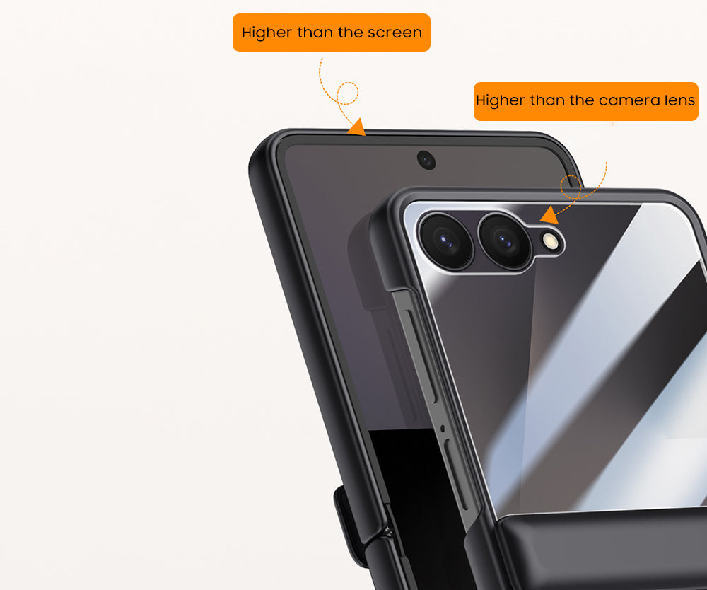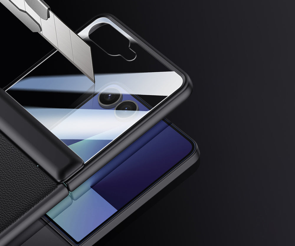 Protect your Galaxy Z Flip7 with this premium PU leather case. It offers durable scratch resistance, a clear tempered film, and a flexible, impact-resistant frame for reliable everyday use. The 180° hinge ensures secure folding and easy handling.