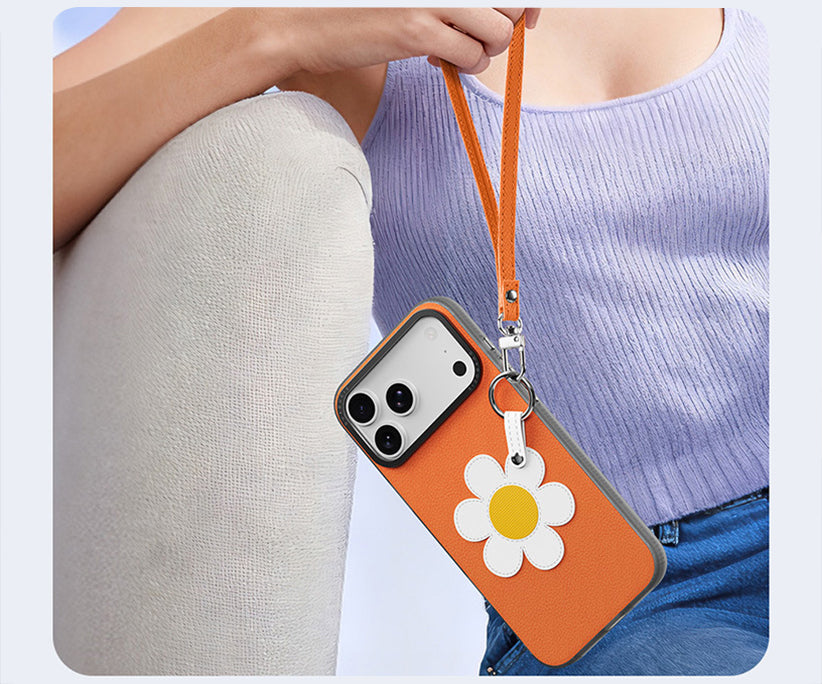 Crafted from premium leather with expert workmanship, this small fresh leather case offers durable, secure phone protection. Its handbag design and wrist strap ensure easy, safe carrying while maintaining a lightweight and elegant profile.