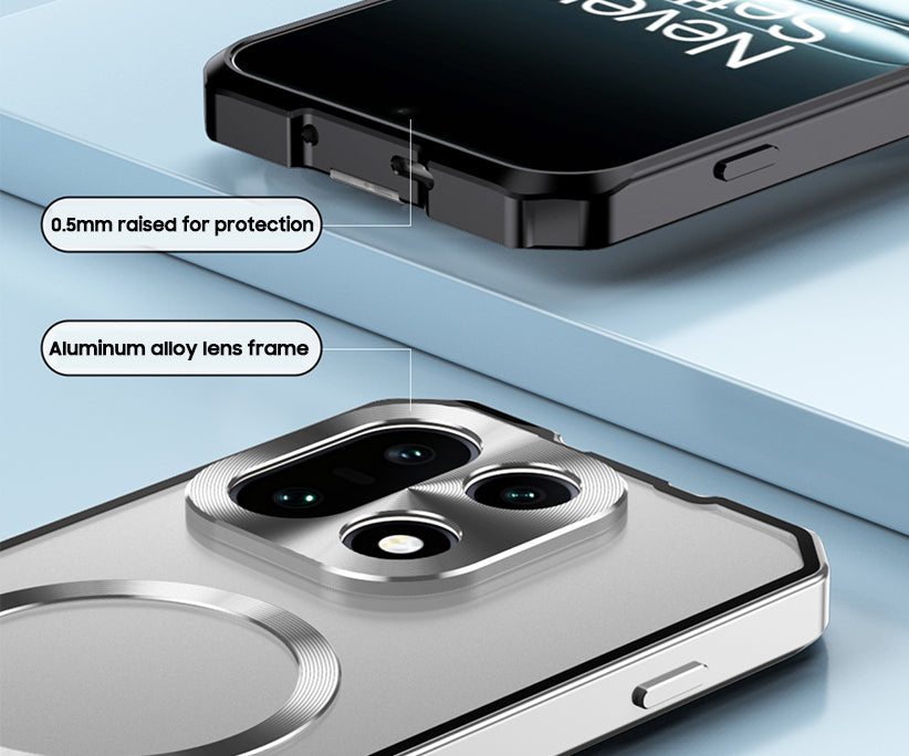 Breaking through the traditional mobile phone case design, the dual metal frame magnetic suction + high-definition glass installation combination. The aluminum alloy material has stronger impact resistance and can resist 75% of the impact force. And there is a special signal hole design, don't worry about the signal will be affected.