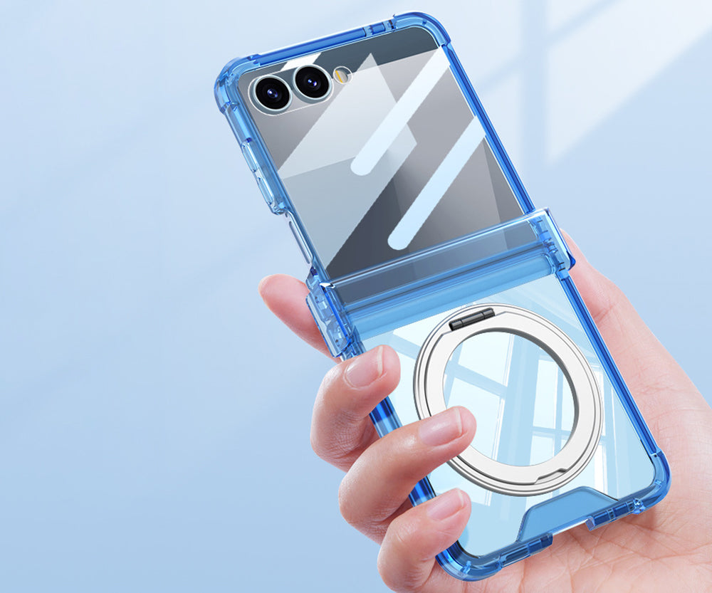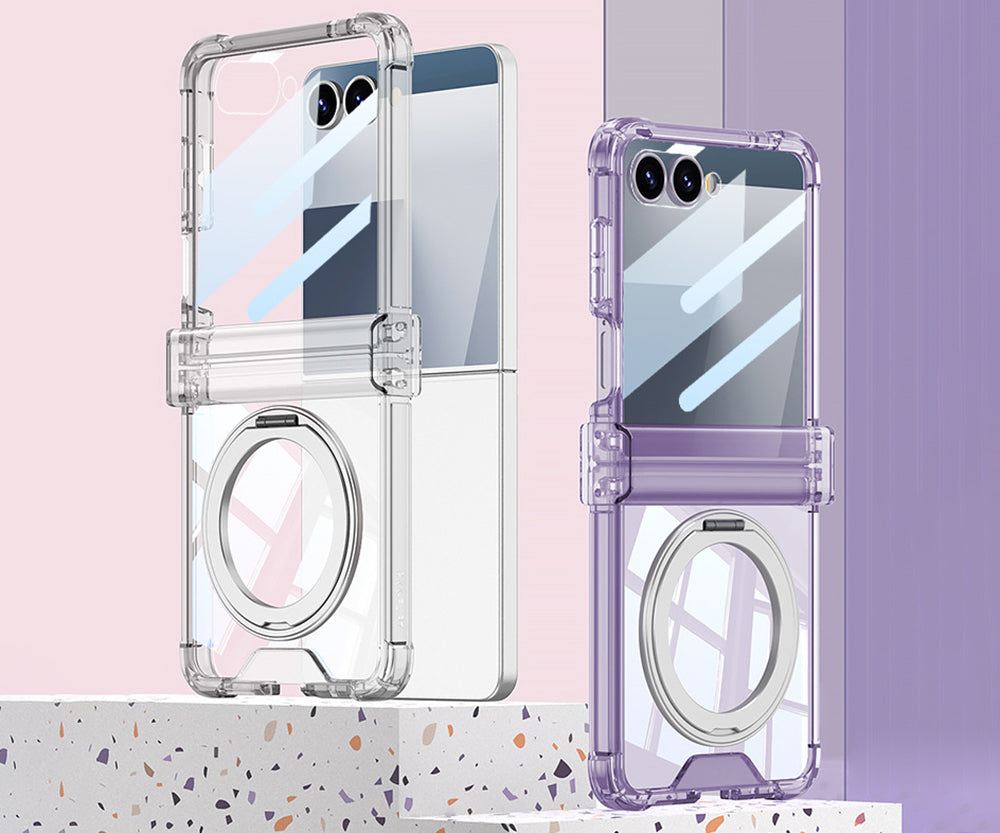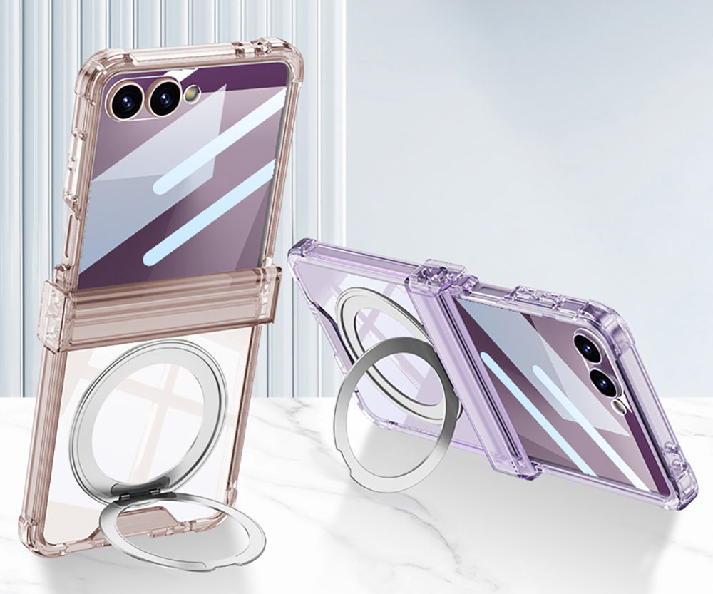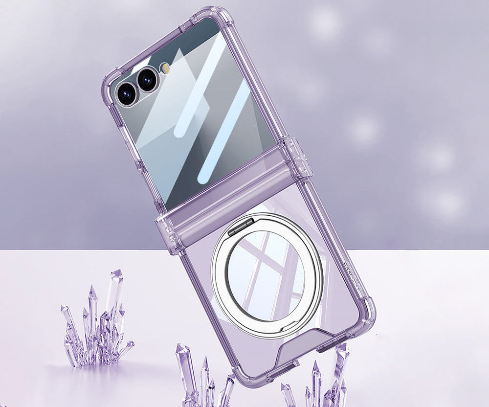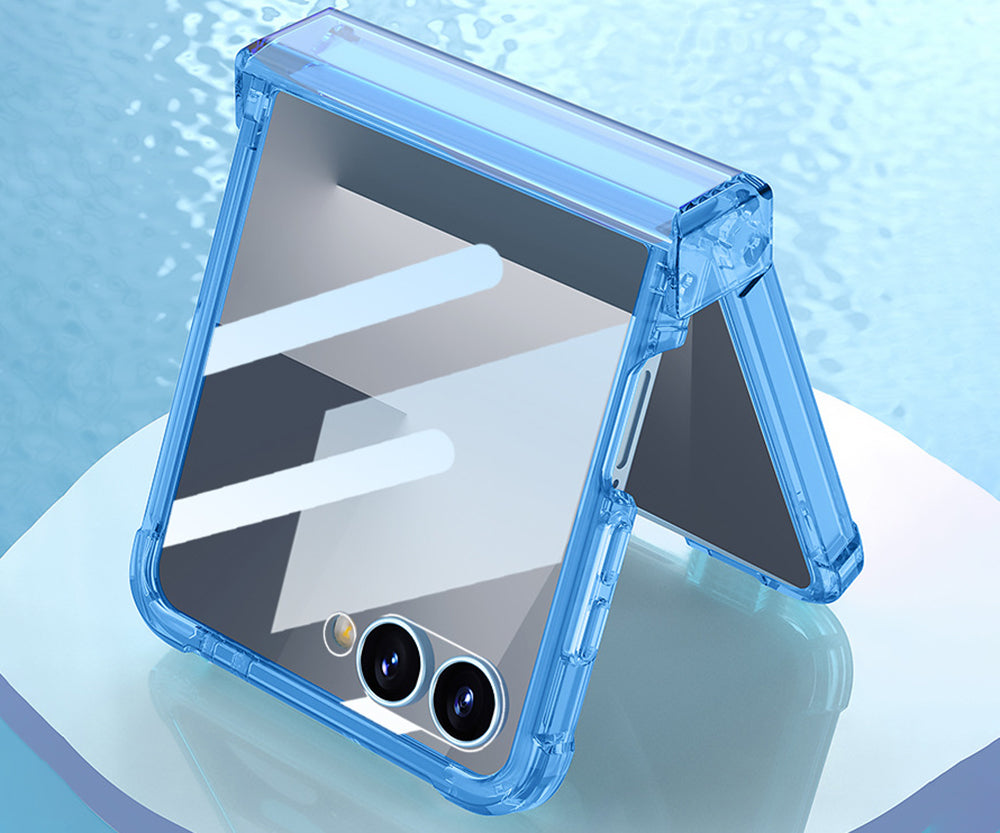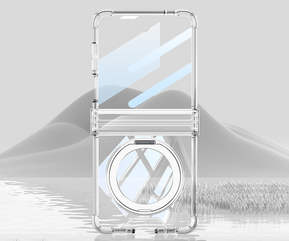 This clear antimicrobial case, crafted from transparent PC material, features a tempered glass front that resists scratches while preserving the original look and design of the Galaxy Z Flip7.