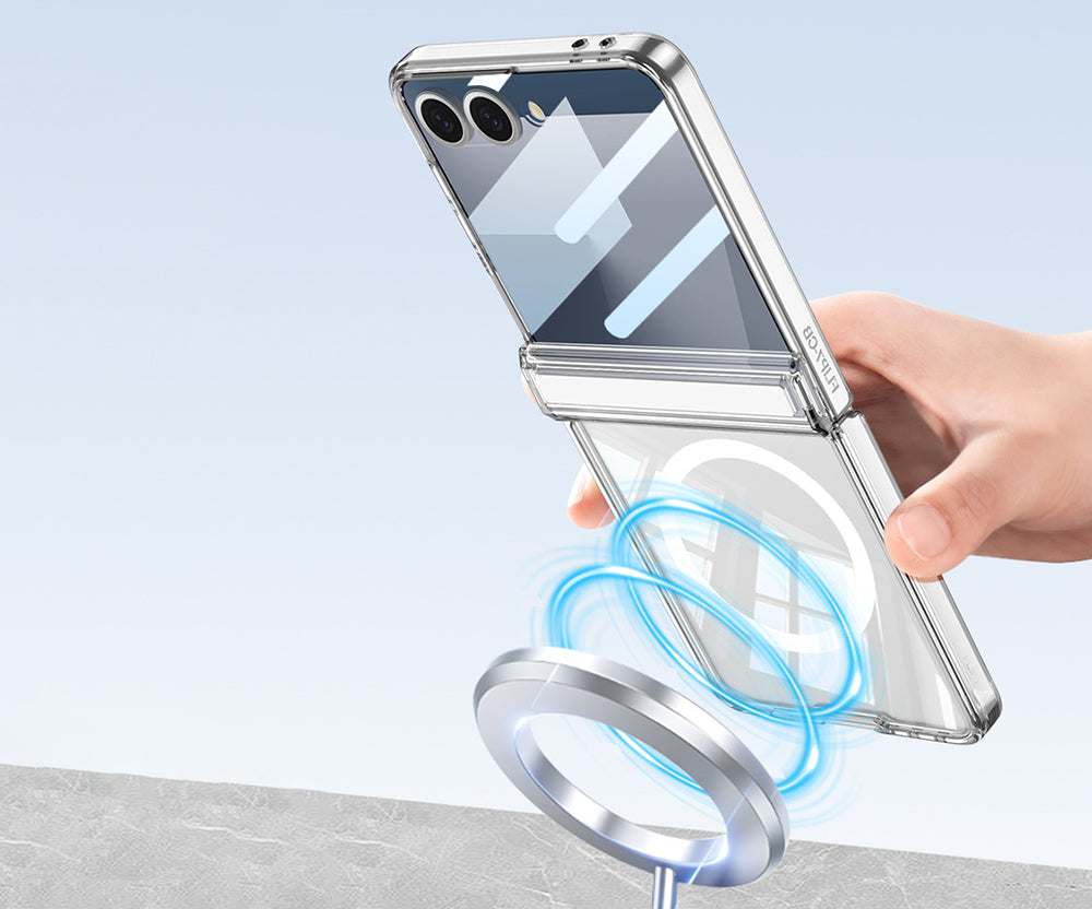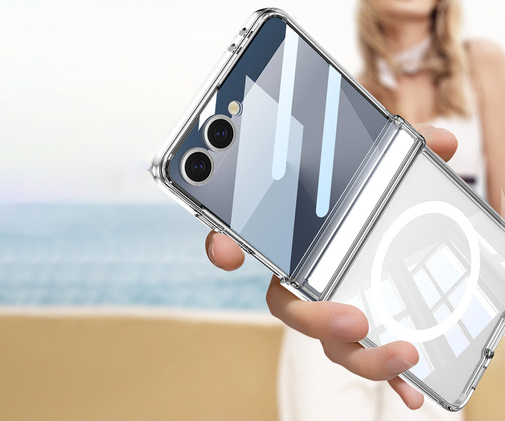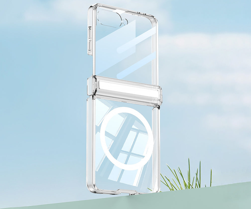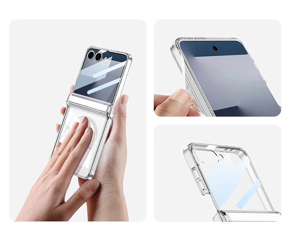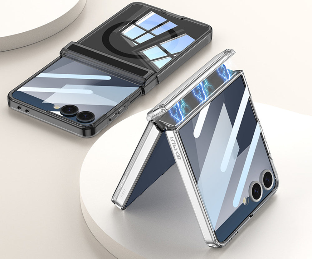 The transparent protective case is made of PC transparent material with built-in antibacterial anti-fingerprint coating. All-inclusive hinge design, automatic rebound, tight fit, true 360° all-inclusive protection, anti-drop upgrade. While protecting the phone, it reveals the original eye-catching color of the phone, highlighting the design sense of the Galaxy Z Flip7.