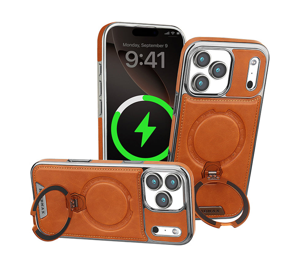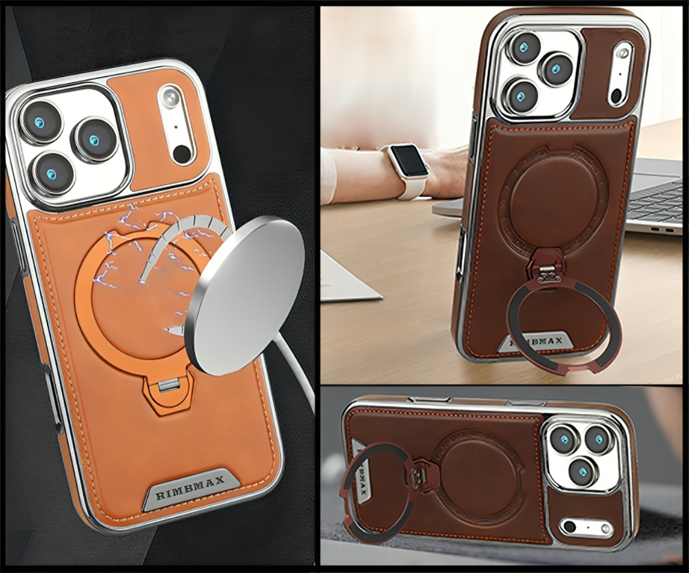 Protect your iPhone with premium leather craftsmanship and soft microfiber lining. Features a 360° rotating stand for hands-free viewing, built-in MagSafe magnets for wireless charging compatibility, and a secure grip that resists scratches and wear.