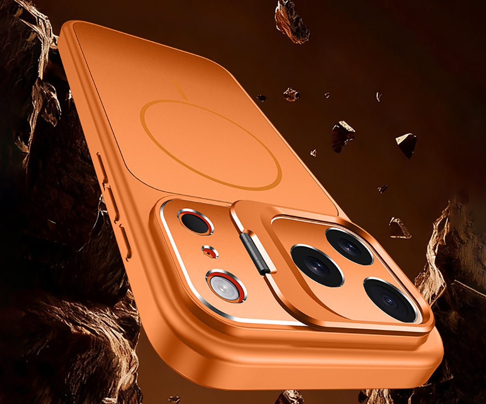 This slim, frosted protective case is crafted from durable, impact-resistant semi-crystalline thermoplastic PP. It features a versatile concealed lens holder that safeguards your camera lens and effortlessly transforms into a phone stand, providing a convenient hands-free viewing experience.