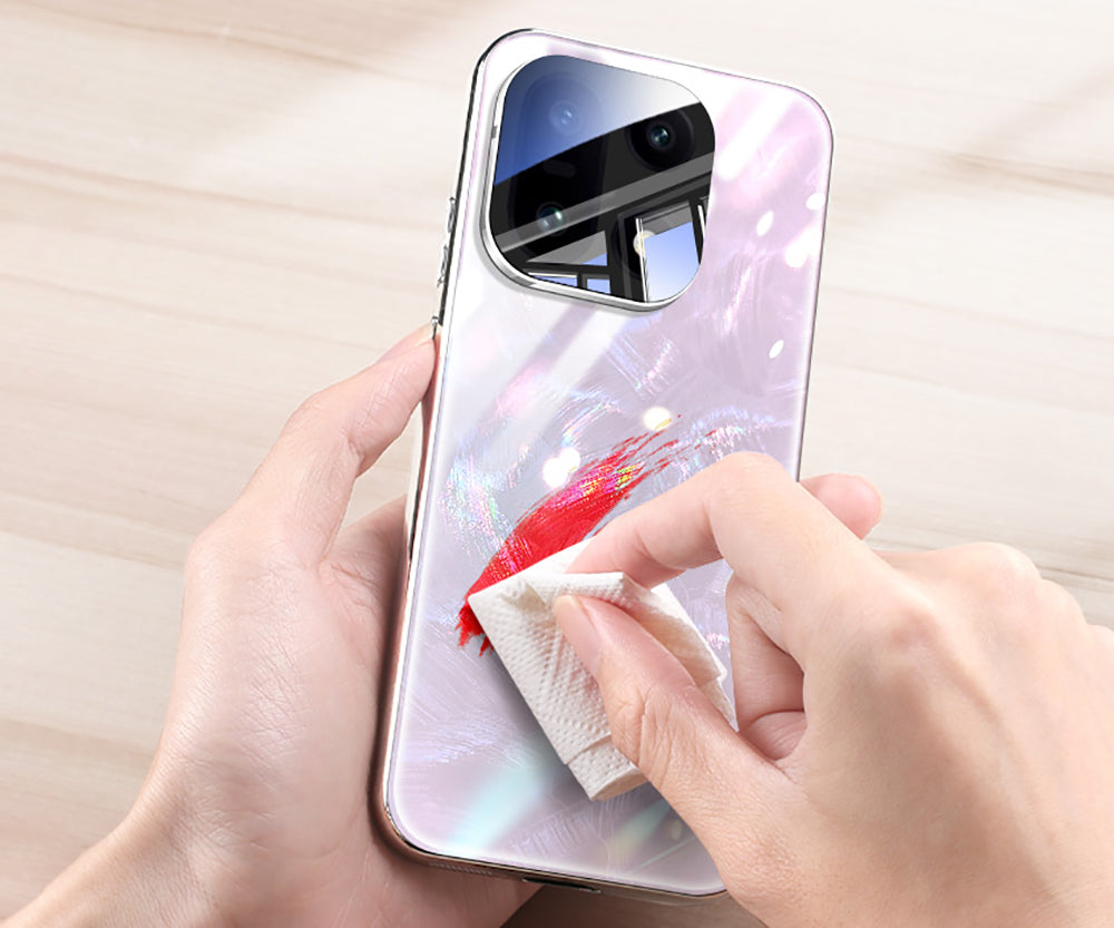 The tough tempered glass back is scratch and abrasion resistant. Add AF molecular oleophobic layer and anti-yellowing technology, strong oil control, anti-fingerprint, not easy to yellow. Even if you use it for a long time, you don't have to worry about affecting the appearance.