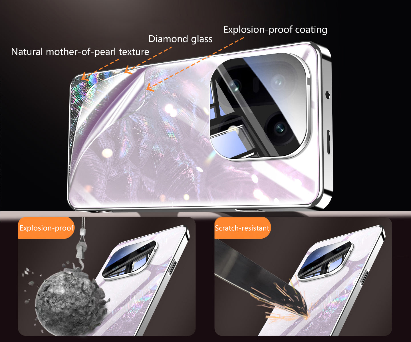 Breaking through the traditional mobile phone case design, it adopts a new electroplating frosted material, which is dazzling and radiant, with a stronger texture and a more delicate feel. Anti-oil and no fingerprints, as comfortable as the real machine. All-inclusive hinge protection, layers of protection, safety protection. Stronger impact resistance, can resist 75% impact.