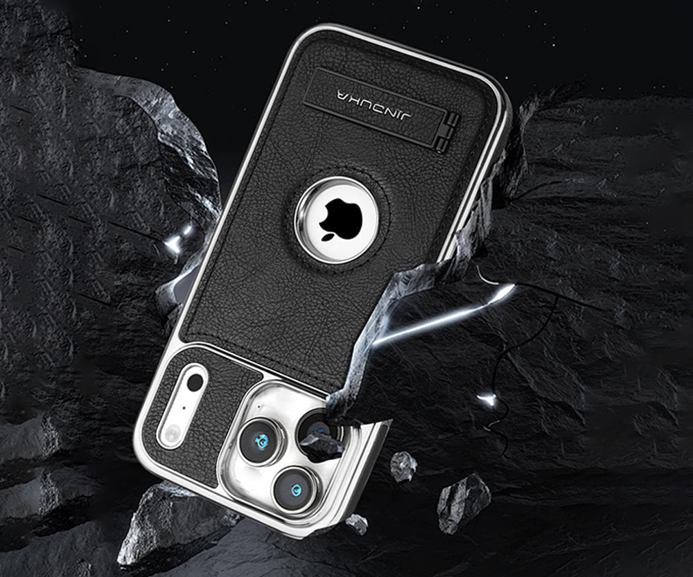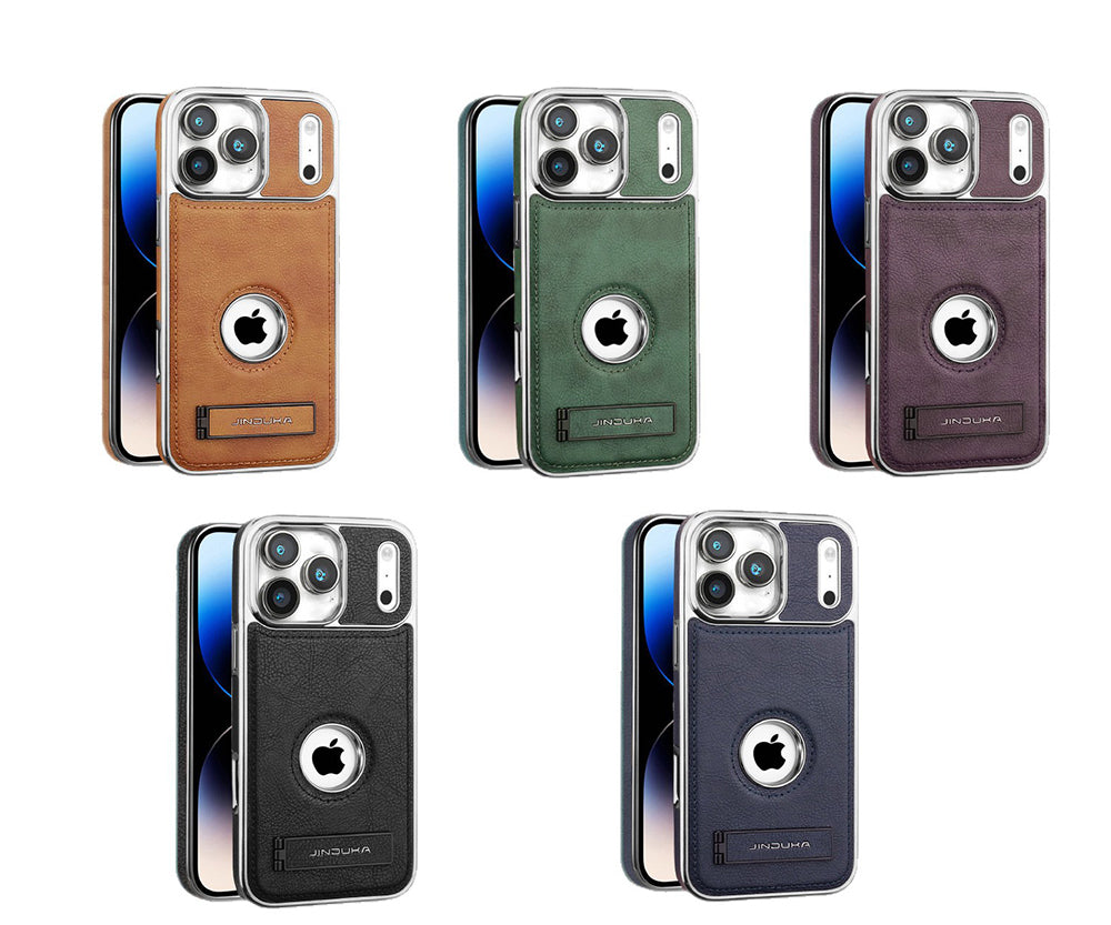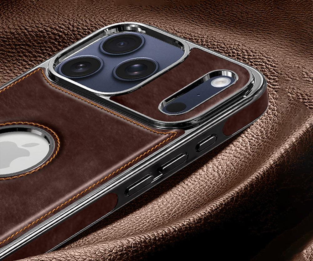 Protective leather case designed for iPhone series with shock-absorbent interior. Smooth leather exterior resists scratches while providing a refined feel. Guards against daily impacts and accidental damage.