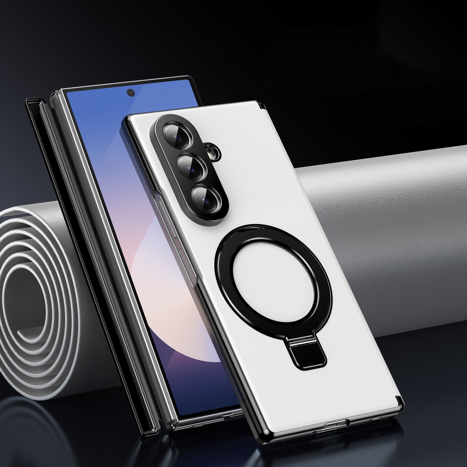 Selected from high-quality, luxurious skin-feel leather, every detail is carefully polished by experienced craftsmen. Not only does it have high-end luxury quality, it also protects your phone better and more securely. The multifunctional magnetic holder has built-in magnets for fast wireless charging. Plus, it easily converts into a stand for convenient and comfortable viewing of movies.