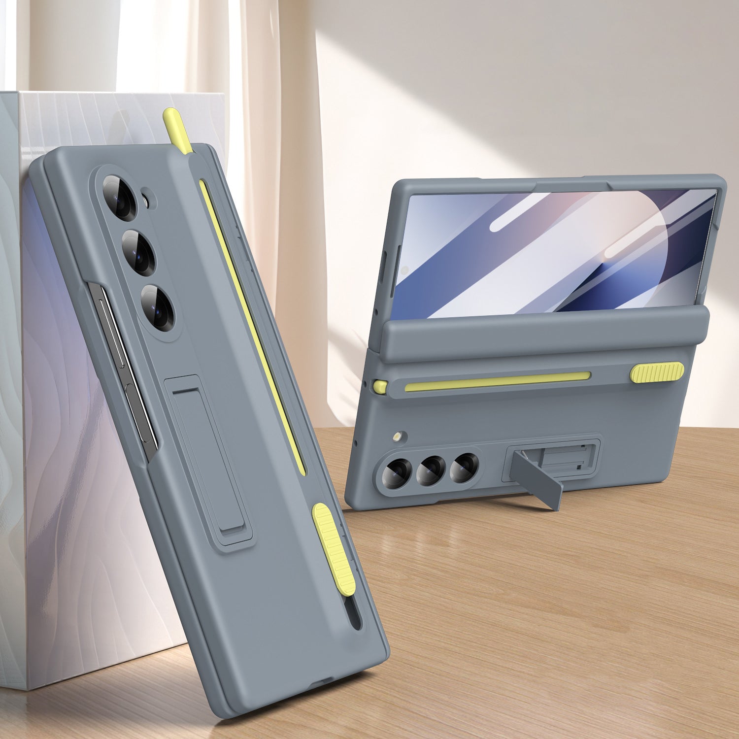Made of anti-fingerprint matte material, impact-resistant. HD tempered film shields screen from scratches/wear. Built-in S Pen slot, slim profile. Vibrant colors. Eco-friendly materials offer targeted protection.