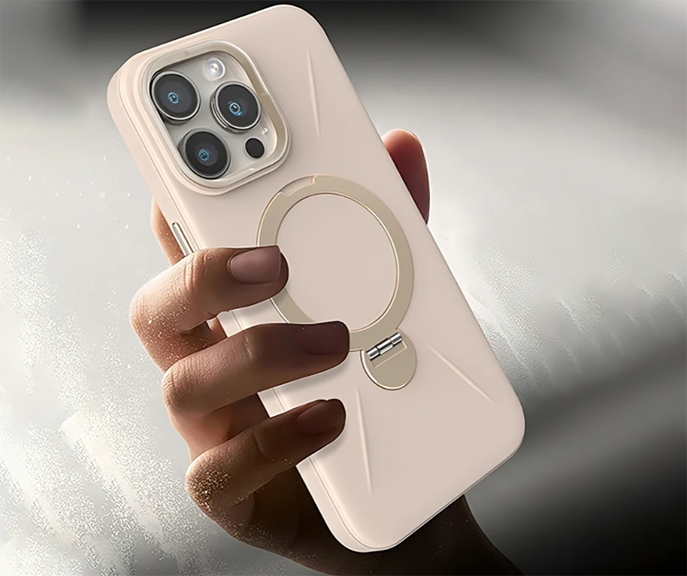 Crafted from liquid silicone, this case offers a smooth feel and superior grip. Its adaptable magnetic mount supports quick wireless charging and functions as a practical phone stand, ideal for viewing videos hands-free.