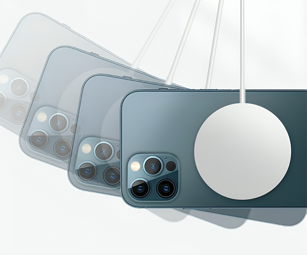 • Perfectly aligned magnets attach to iPhones with MagSafe.